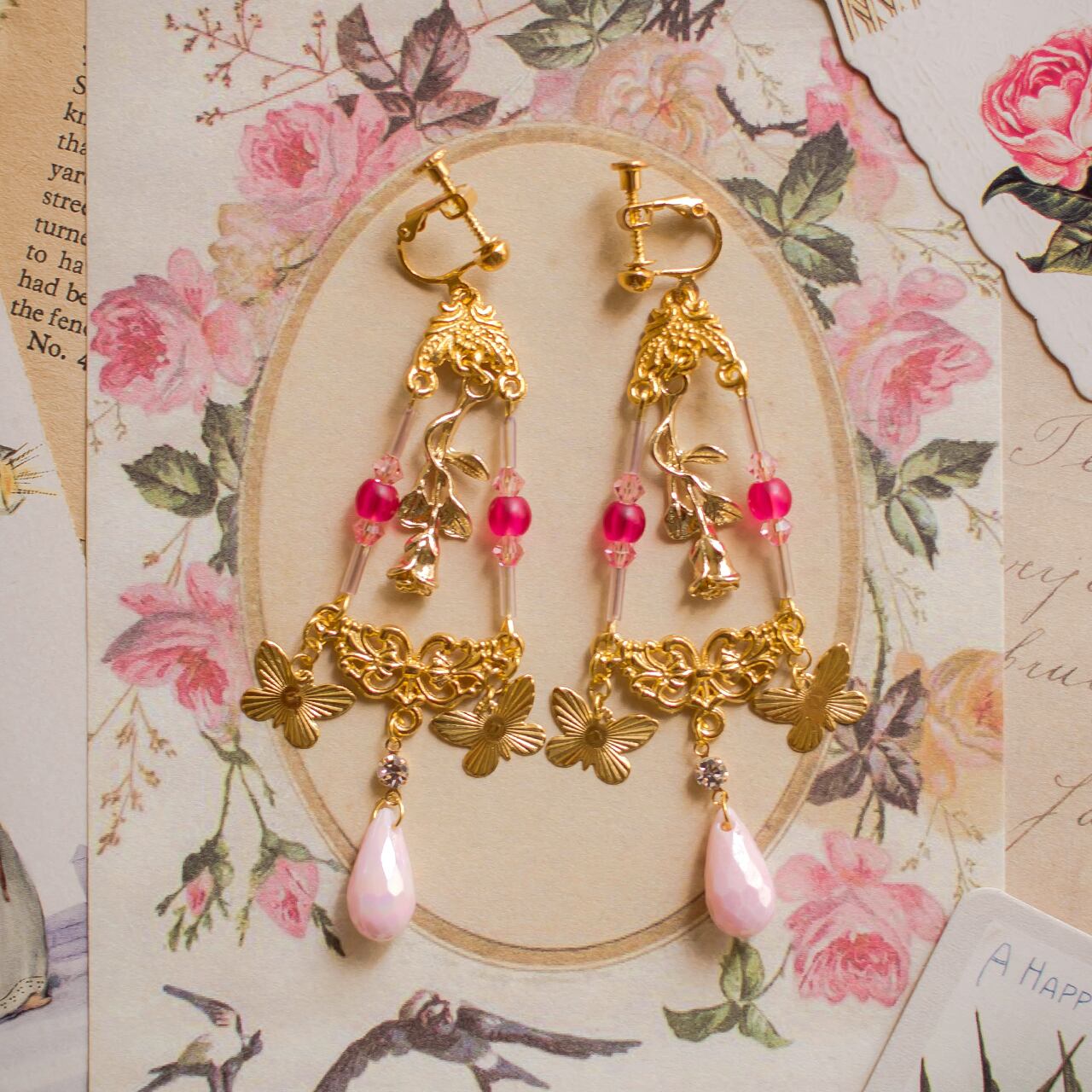慈愛の燈 薔薇と蝶のチャーム・イヤリング・ピアス subrmight 乳母の子守歌