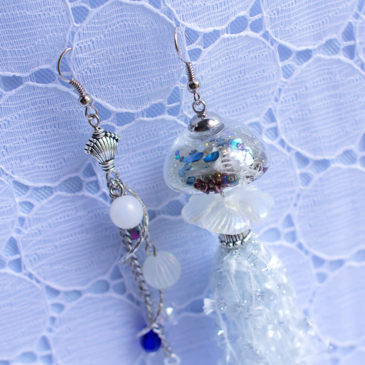 宵の展望 クラゲのアシンメトリーデザイン シルバーチャーム・イヤリング・ピアス 珊瑚は空に憧れて