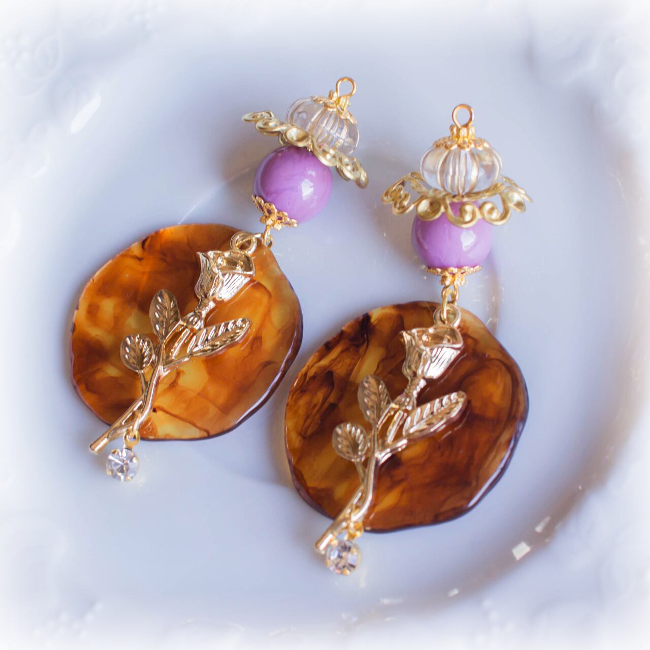 ダージリンは午後7時 紅茶にバラの花揺れるチャーム・イヤリング・ピアス 空中庭園のTea Shop