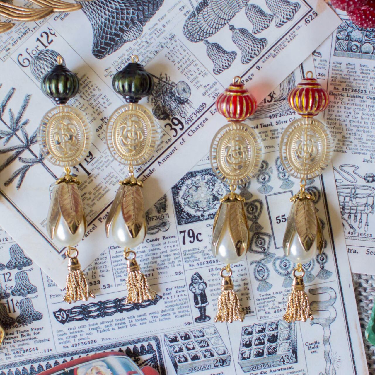 照らす提灯 大粒のパールが小さく鳴り揺れるタッセルチャーム・ピアス・イヤリング 樹上の冬支度