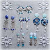 【新色追加】極夜の氷塔 透明感のあるクリスタルと雪の結晶のビジューが揺れるフープチャーム・イヤリング・ピアス subrmight 湖に眠る城
