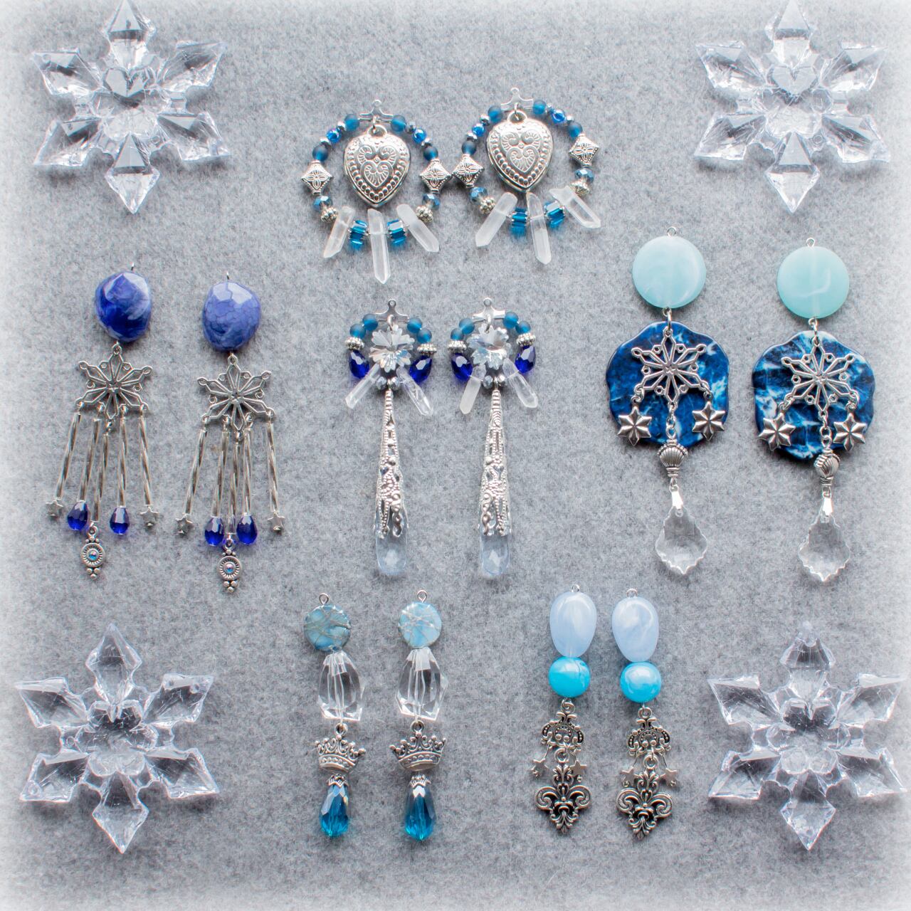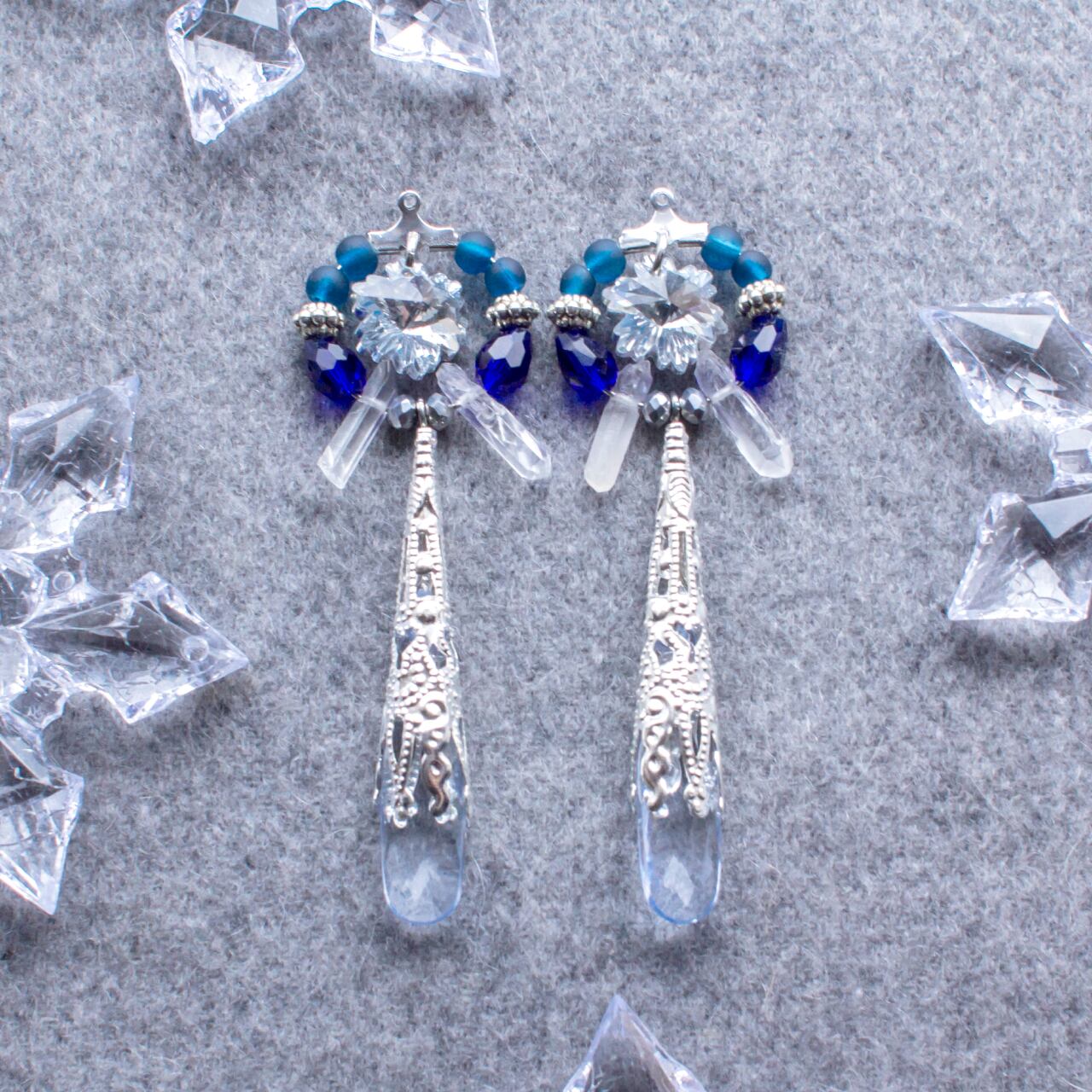 主な素材:金属パーツ・アクリル・ガラスビーズ・天然水晶・ビジュー