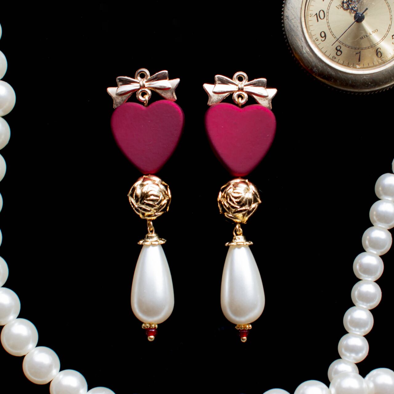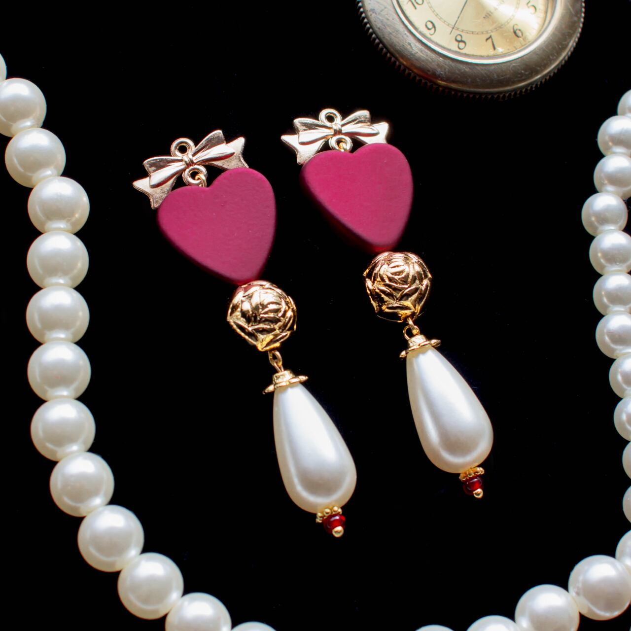 【再販】指先とフィルム 大粒のハートとパールが揺れるチャーム・ピアス・イヤリング Follettaと休日