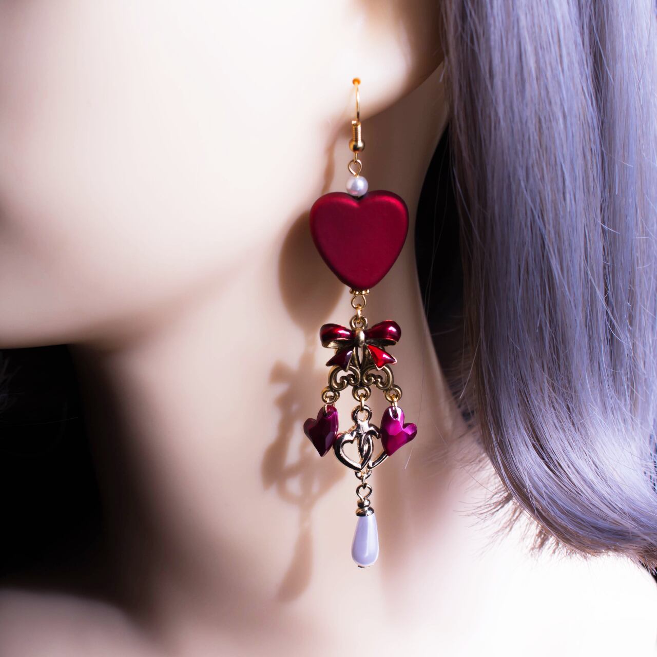 横顔とグランルー リボンとハートが揺れるチャーム・ピアス・イヤリング Follettaと休日