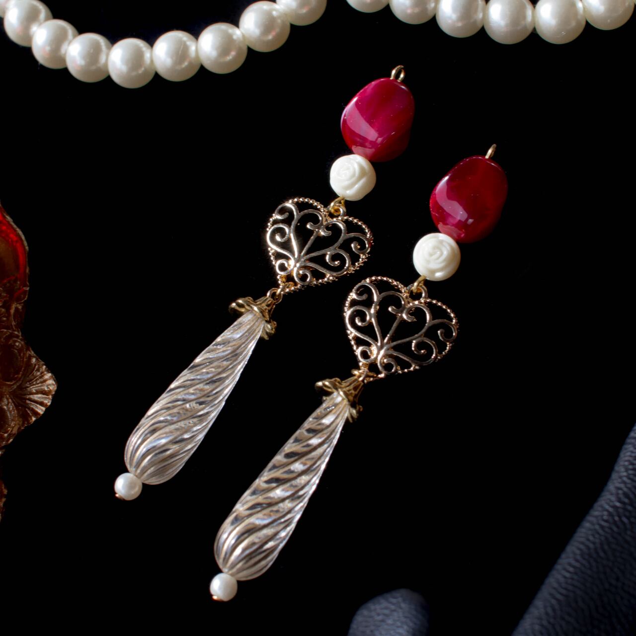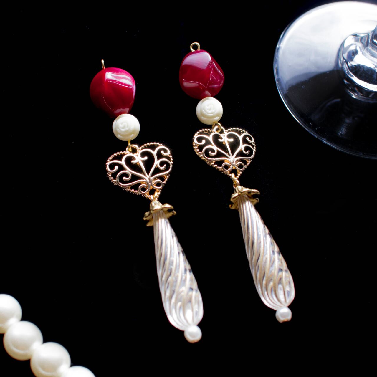 視線とディネ ハートとツイストビーズが揺れるチャーム・ピアス・イヤリング Follettaと休日