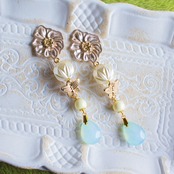花舞う水辺 花に舞う蝶と雫が揺れるチャーム・ピアス・イヤリング エオストレの吹笛
