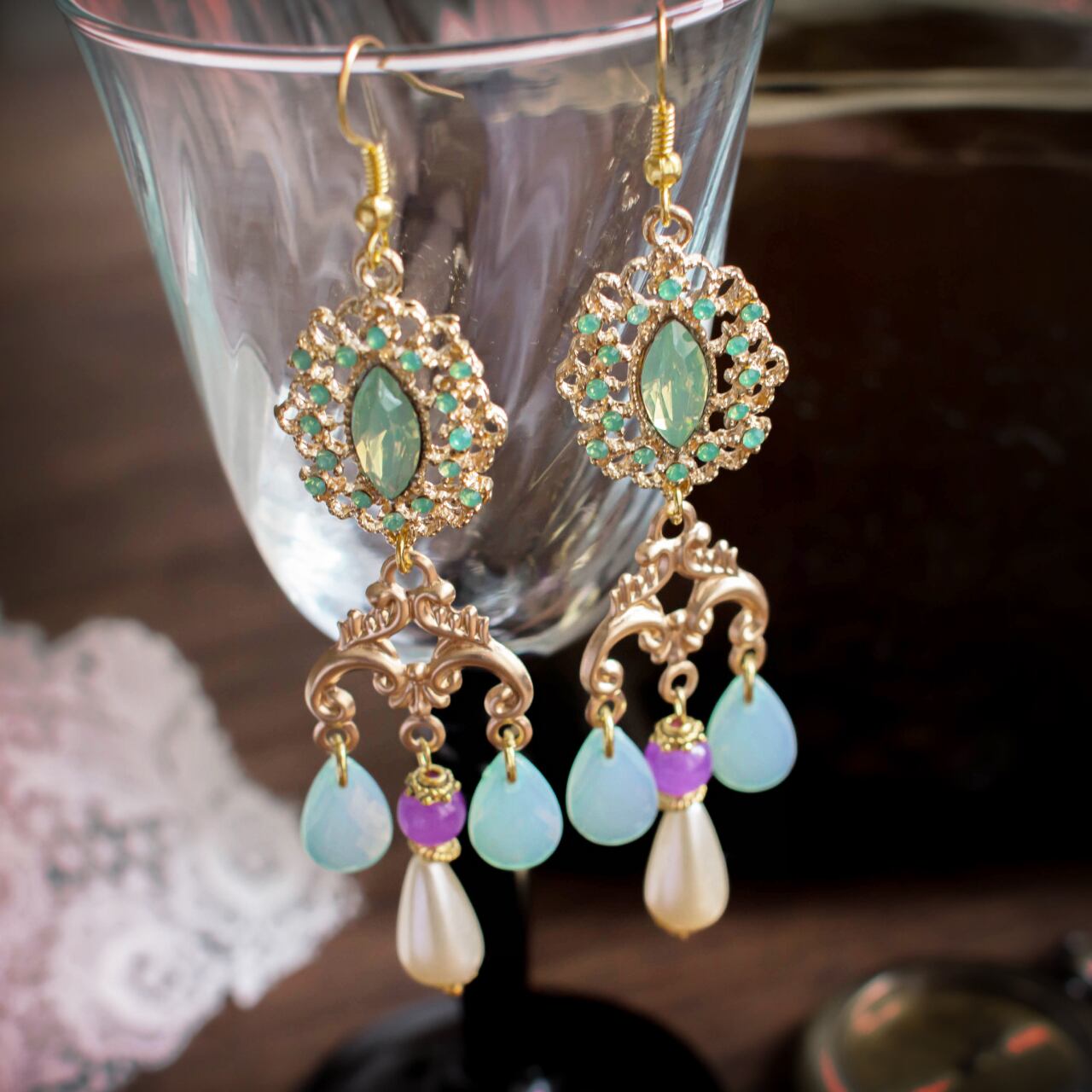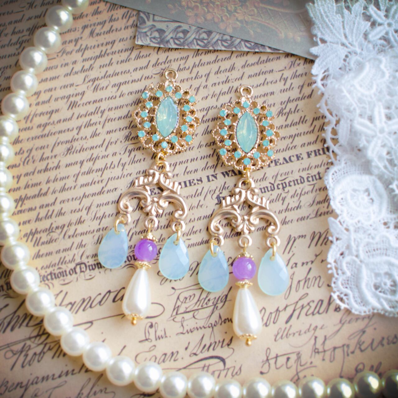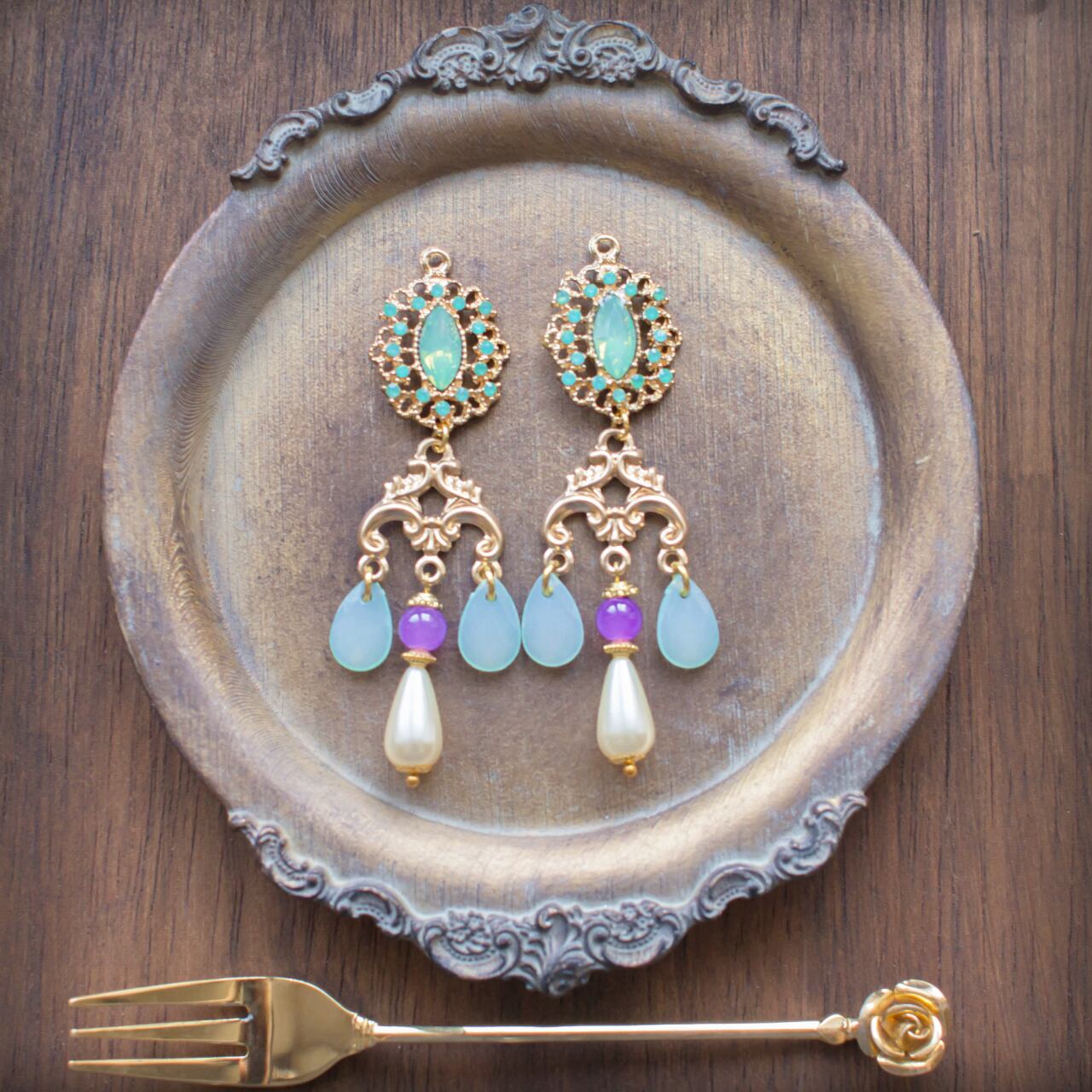 霧笛のヴァルス ティアドロップビーズとパールが揺れるチャーム・ピアス・イヤリング ヴェールと踊る幽霊船