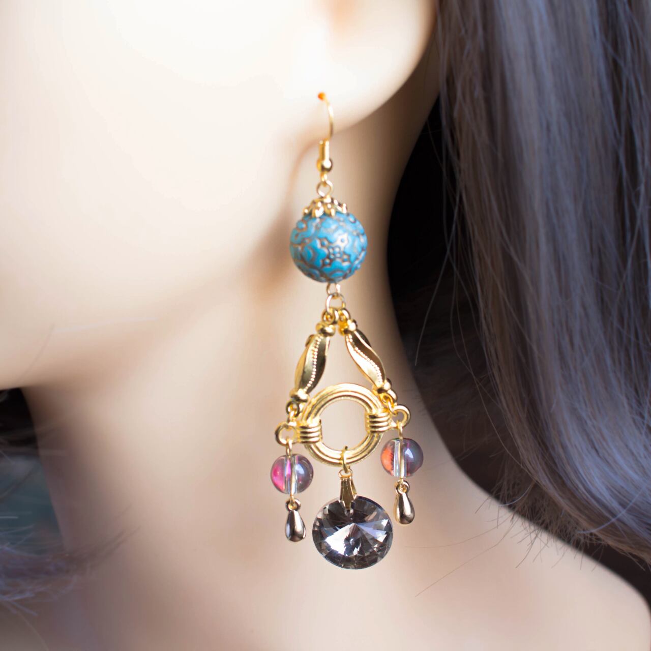 航路なぞるフネートル グラデーションビーズと大粒ビジュ―揺れるチャーム・ピアス・イヤリング ヴェールと踊る幽霊船