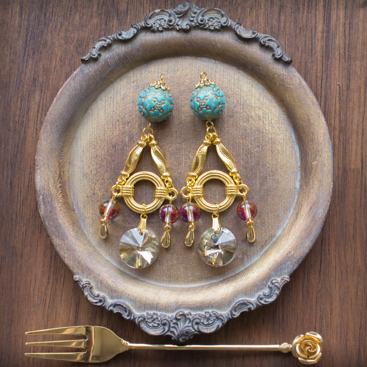 主な素材:金属パーツ・ガラス、アクリルビーズ、ビジュー