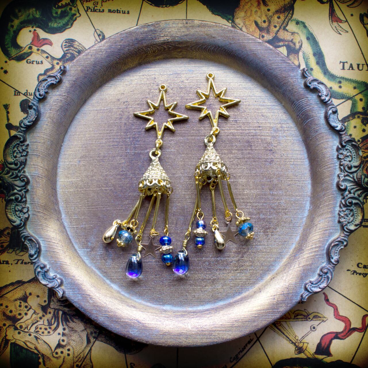 幸運の訪れ タッセルパーツが輝き揺れるチャーム・イヤリング・ピアス subrmight 星読と月の歌