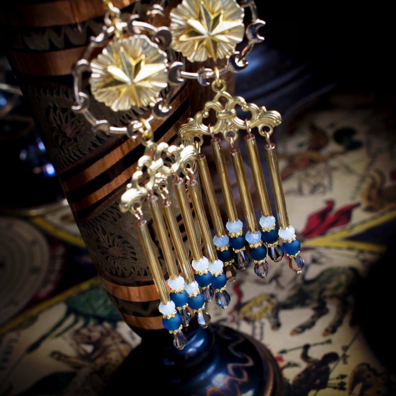 オルフェウスのしらべ 星の光のタッセルが揺れるフープチャーム・イヤリング・ピアス subrmight 星読と月の歌