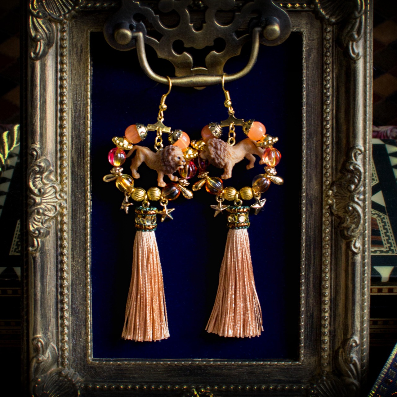 【再販】Lion ライオンの火の輪くぐりタッセルフープチャーム・イヤリング・ピアス subrmight 幻怪の陽炎サーカス