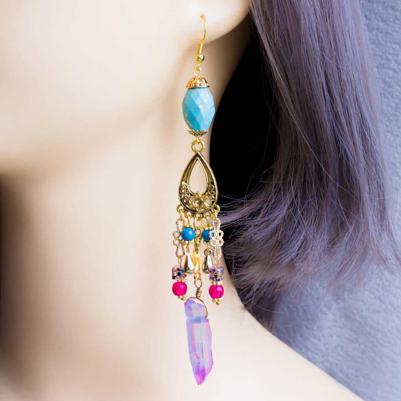 ウードの音色 エスニックなデザインに大きなクリスタルが揺れるチャーム・ピアス・イヤリング OASIS CHARM