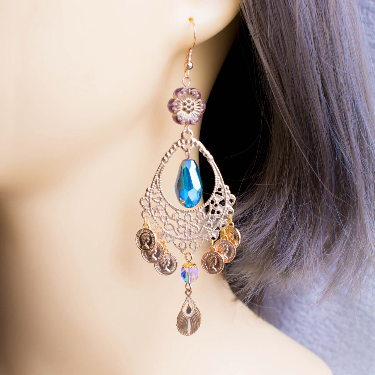 イシスの瞳 エジプシャンなデザインにコインと羽が揺れるチャーム・ピアス・イヤリング OASIS CHARM