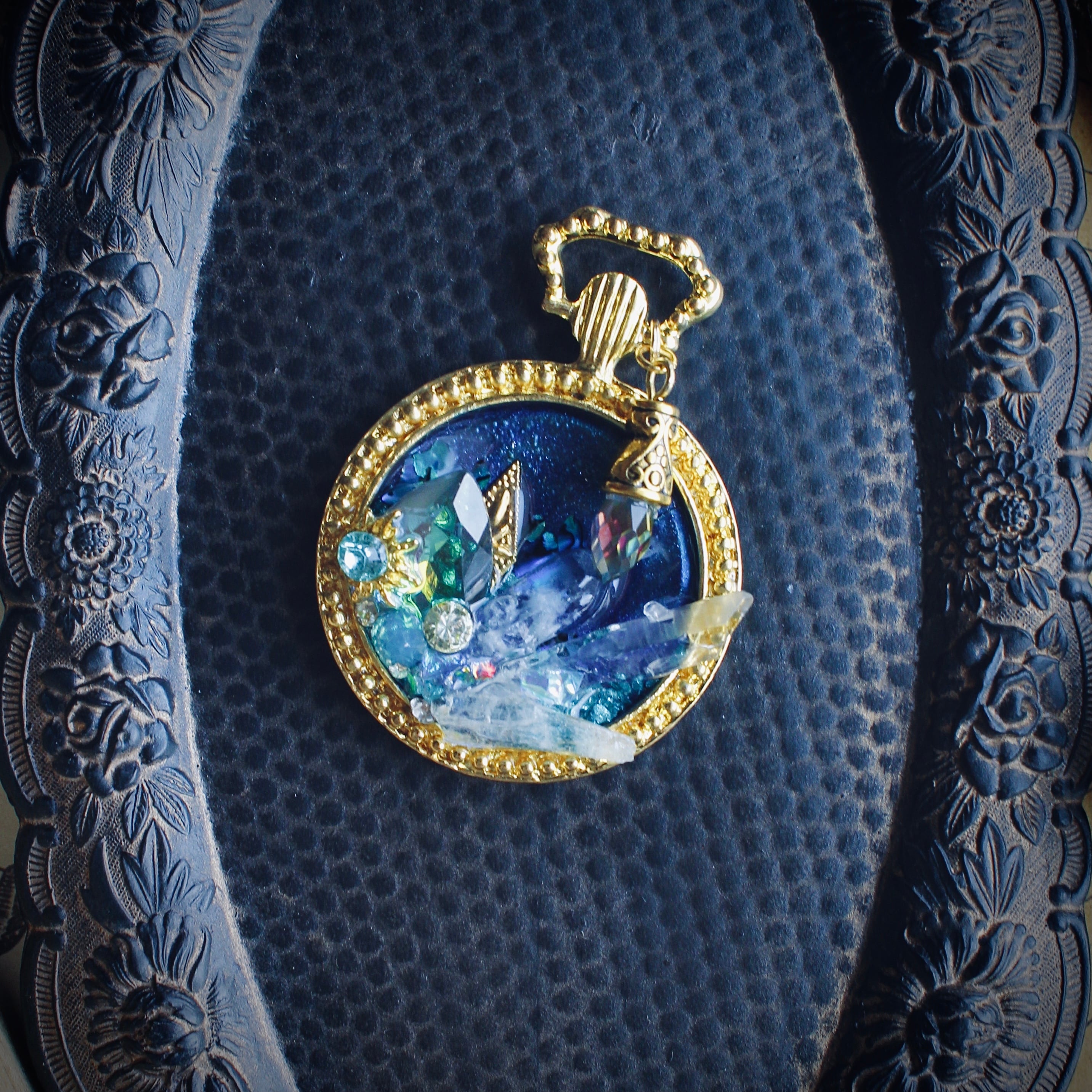忘却船のバイスタンダー 懐中時計に天然水やファセットビーズが輝く鉱物ペンダント・ネックレス Hermes antique