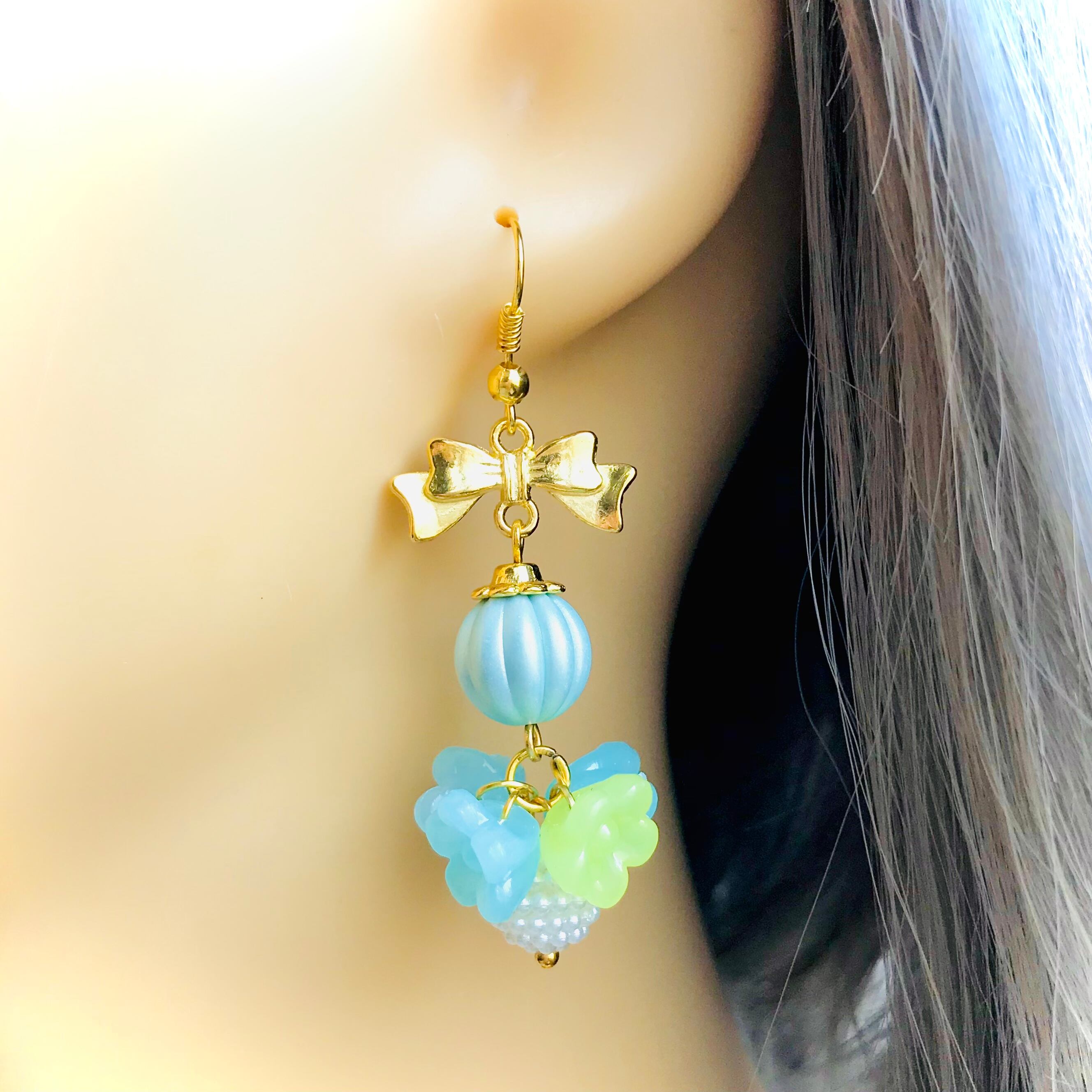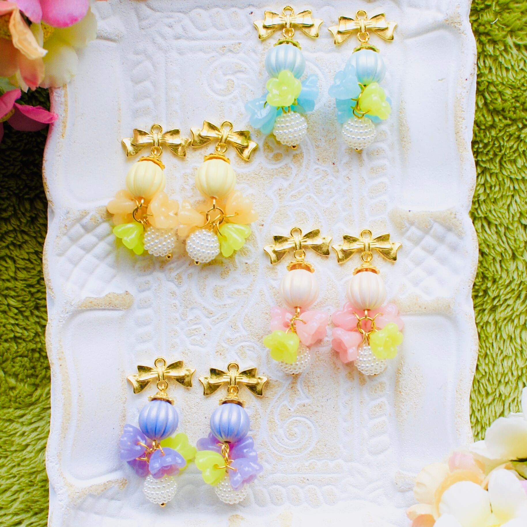 花かごにひとつ 花とパールが揺れるパステルチャーム・ピアス・イヤリング エオストレの吹笛