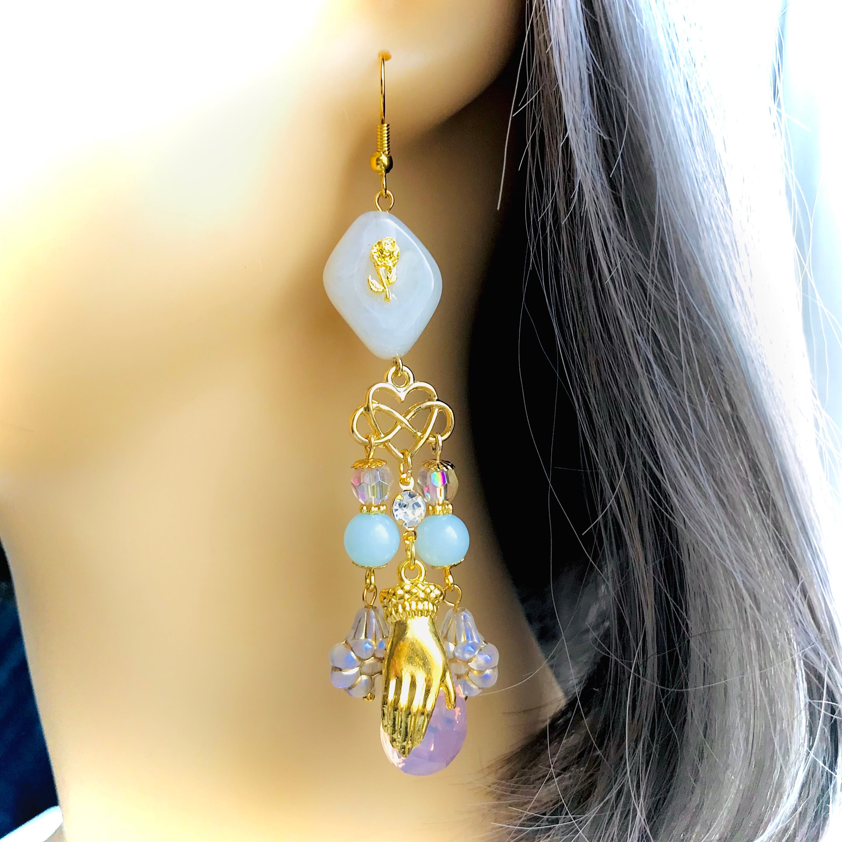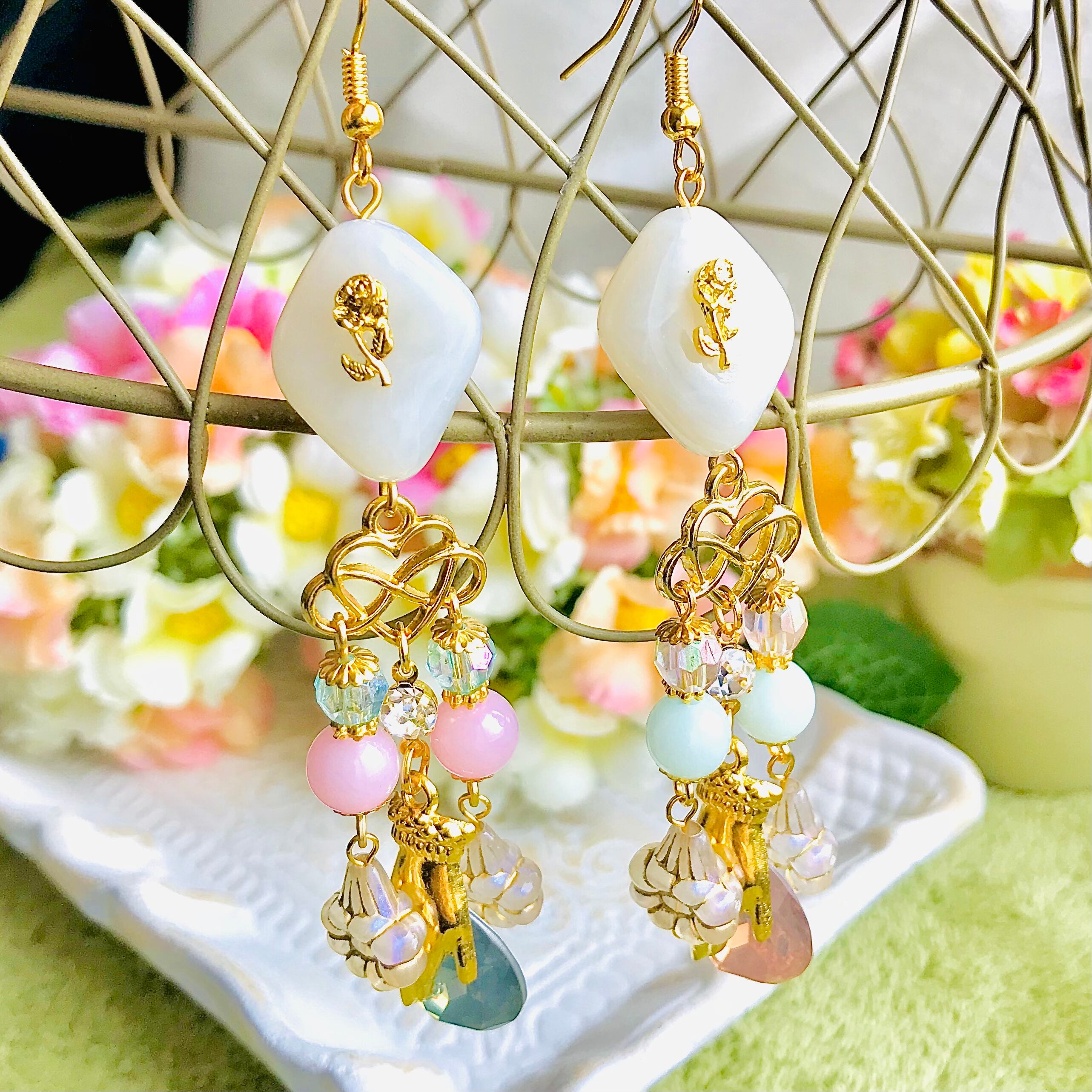 復活のしずく 花とビジューが揺れるパステルチャーム・ピアス・イヤリング エオストレの吹笛