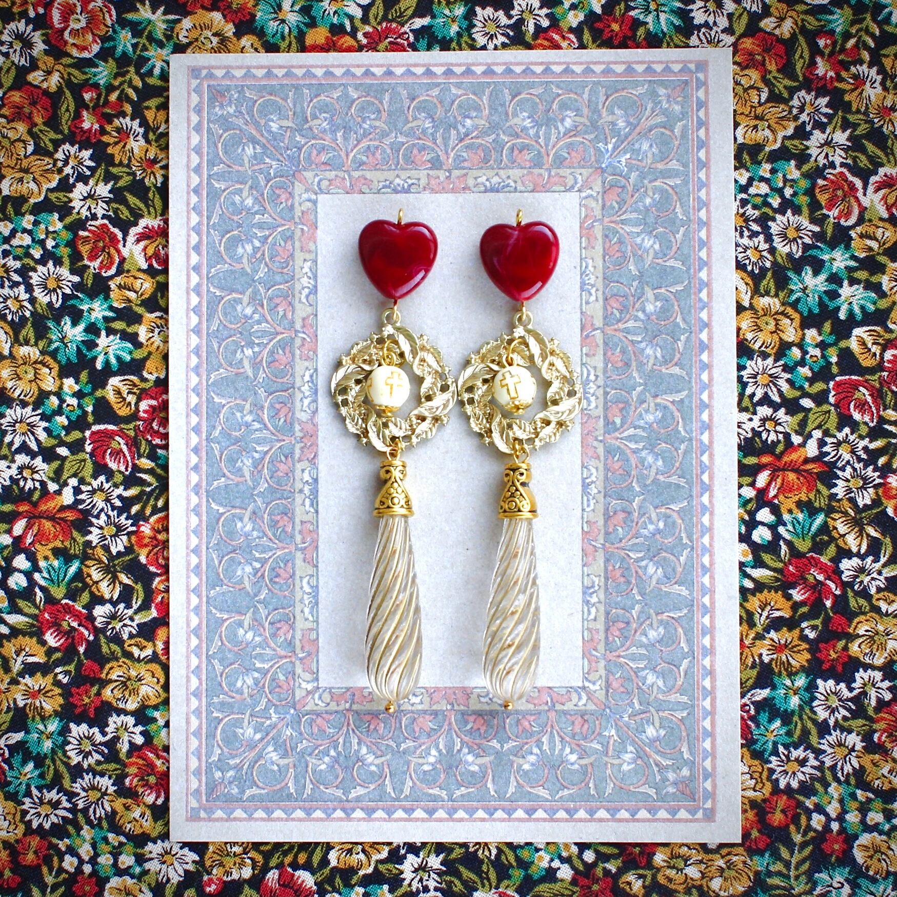 Pomme de pin 可愛ハートと大きなクリアビーズが揺れるチャーム・ピアス・イヤリング 樹上の冬支度